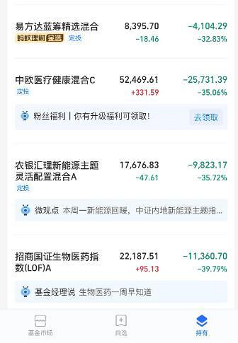 基金该怎么办?心都碎了,最近没看支付宝,打开看了一眼,惊掉下巴中欧医疗、新能源收益率-40%多,赔成这样,如果不补仓,估计要几年才能回本。