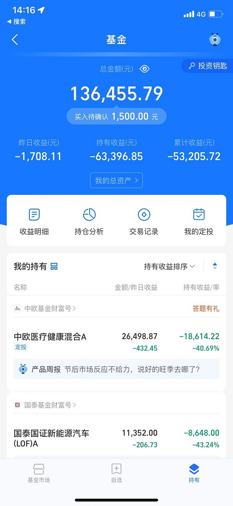 很久没看基金,昨天打开看惊掉我下巴!直接负40%多了…
