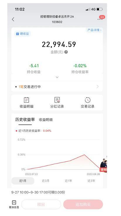招行的一款理财,我自己买的一款,持有281天,还是负的?后来咨询理财经理买了另一款封闭414天,目前年化利率在4
