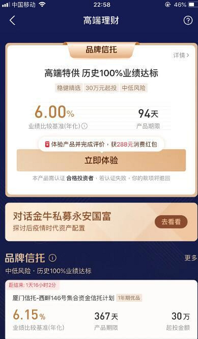请问下有没有人买过厦门信托94天,年化利率6.00%左右,这是什么理财产品呢?