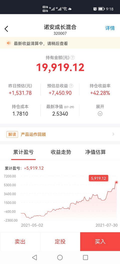 6月清仓了白酒。目前持有诺安,睿远和兴全。去年诺安天天骂上热搜的时候,我买了诺安。也经历了今年2月和3月的低迷,这几个月终于收益涨了。但是睿远和兴全还是绿的。打算8月底卖出一部分诺安。阿弥陀佛!!!愿老天保佑!!