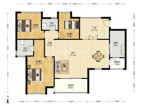 鲁能11街区,107平米三房,读巴蜀小初高,历史最低148万