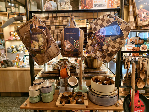 前几年在重庆天地逛到的家居店,里面有很多好看好玩的东西,隔几个月都会来逛逛,大多数时候都是欣赏,因为单价不便宜[/11尴尬] 最喜欢的就是他们家的各种木质餐具,关注的vlog美食博主们人手一块的格子菜板,这里也有,小尺寸的260多