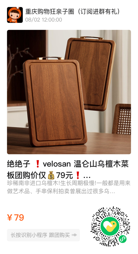 绝绝子!velosan 温仑山乌檀木菜板团购价仅79元