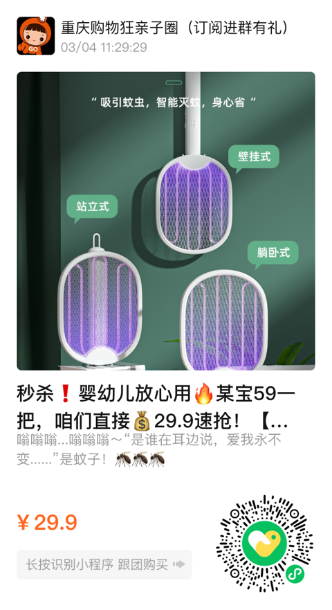 秒杀!29.9速抢Looye路爷K27椭圆折叠灭蚊拍婴幼儿放心用某宝59一把,咱们直接29.9无 √变革双模式:既是电蚊拍,也是灭蚊拍 √挂壁式/站立式/躺卧式,高处壁挂,防止儿童触碰 √错位式结构,可贴墙,无死角灭蚊 2025升级款锂电池,长久续航 紫光诱蚊,放着就能杀蚊虫0一个=电蚊拍+灭蚊灯~