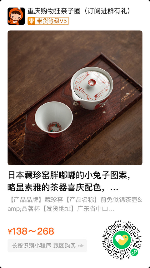 日本藏珍窑 胖嘟嘟的小兔子图案,略显素雅的茶器喜庆配色,以红色调为主 纯手绘制品,尽显工匠精神