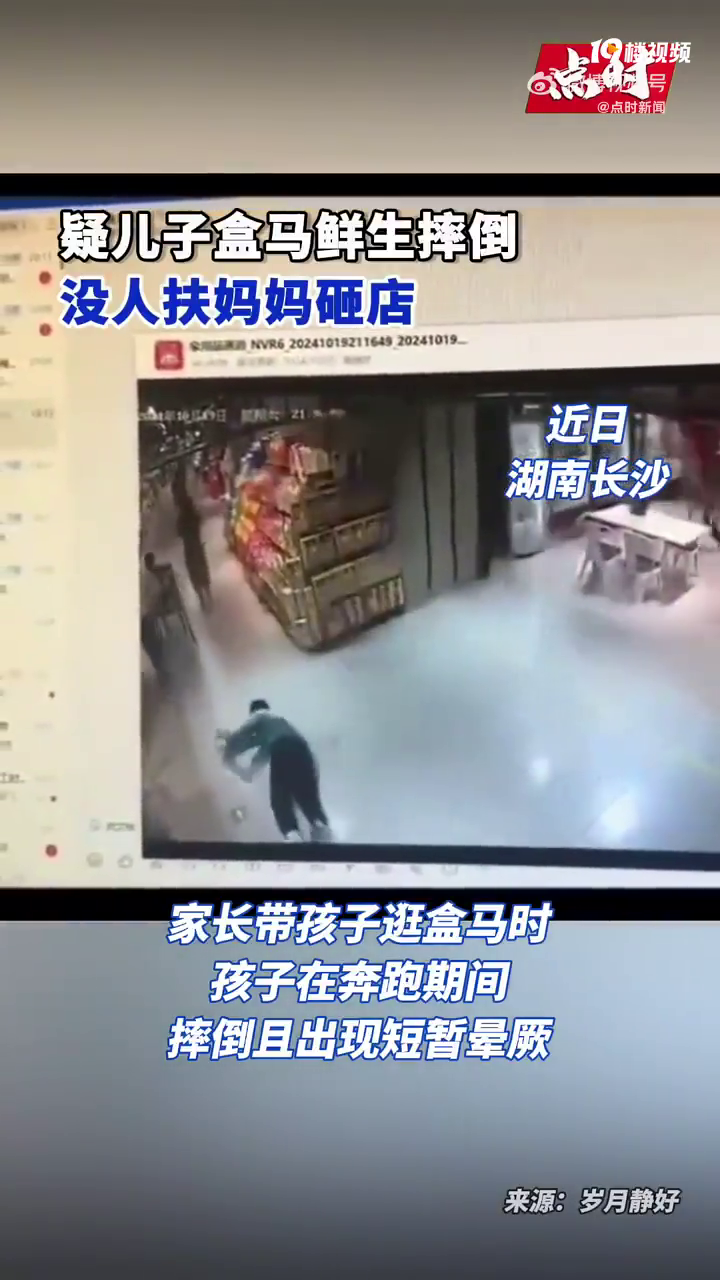 疑儿子盒马鲜生摔倒没人扶妈妈砸店