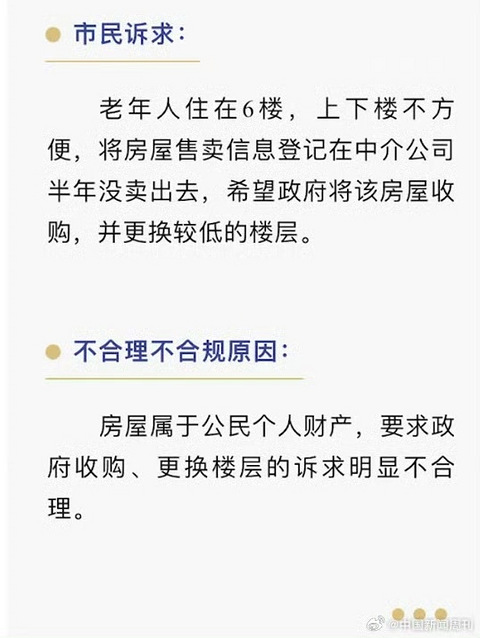 老人住6楼上下楼不方便,要求政府将房屋收购并更换为低楼层