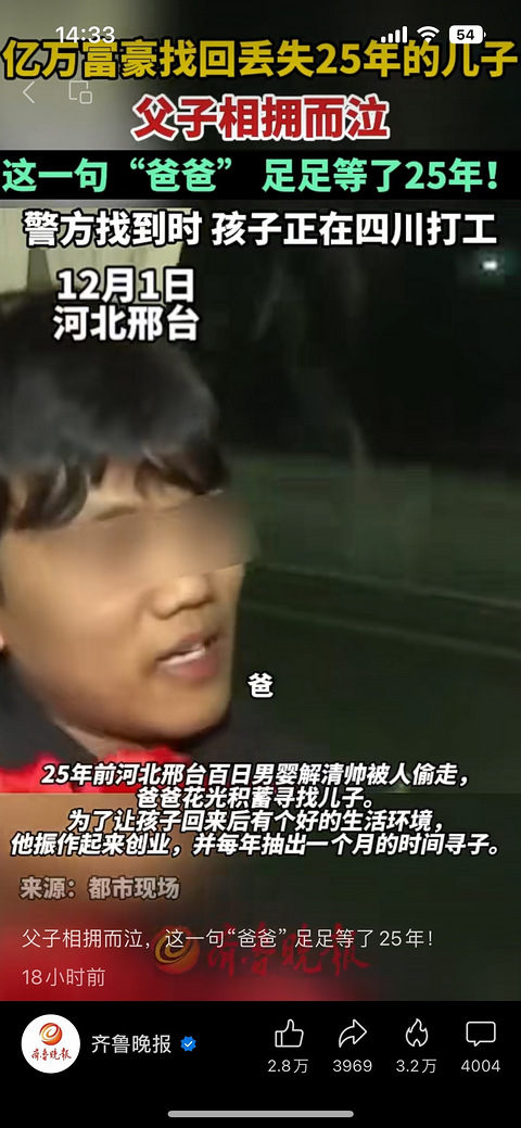 刷屏!亿万富豪找回丢失25年的儿子!“先买车,已备好三套房”