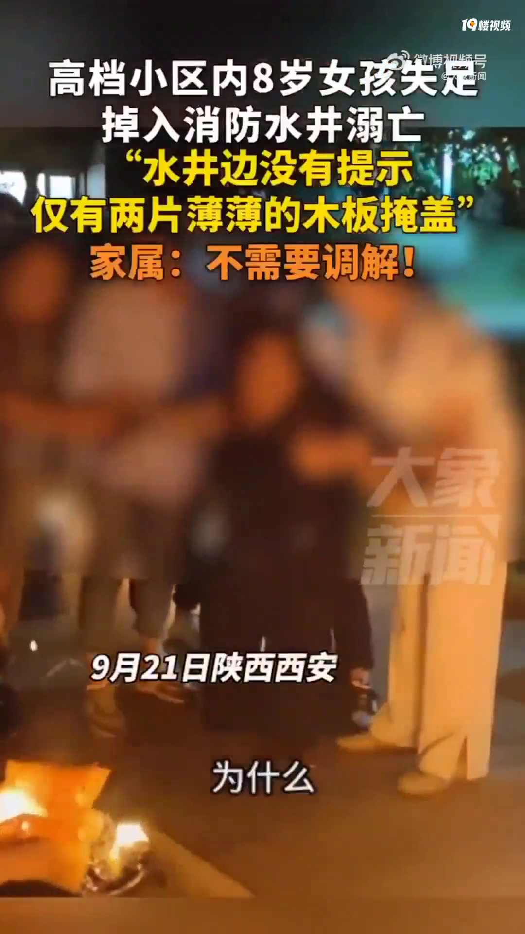 #养孩子养了8年就这么没了#9月21日陕西西安,高档小区内8岁女孩失足掉入消防水井溺亡,“水井边没有任何提示,仅有两片薄薄的木板遮盖”,其家属:不需要调解! 我养孩子养了8年,不欠物业,为什么物业要欠我?