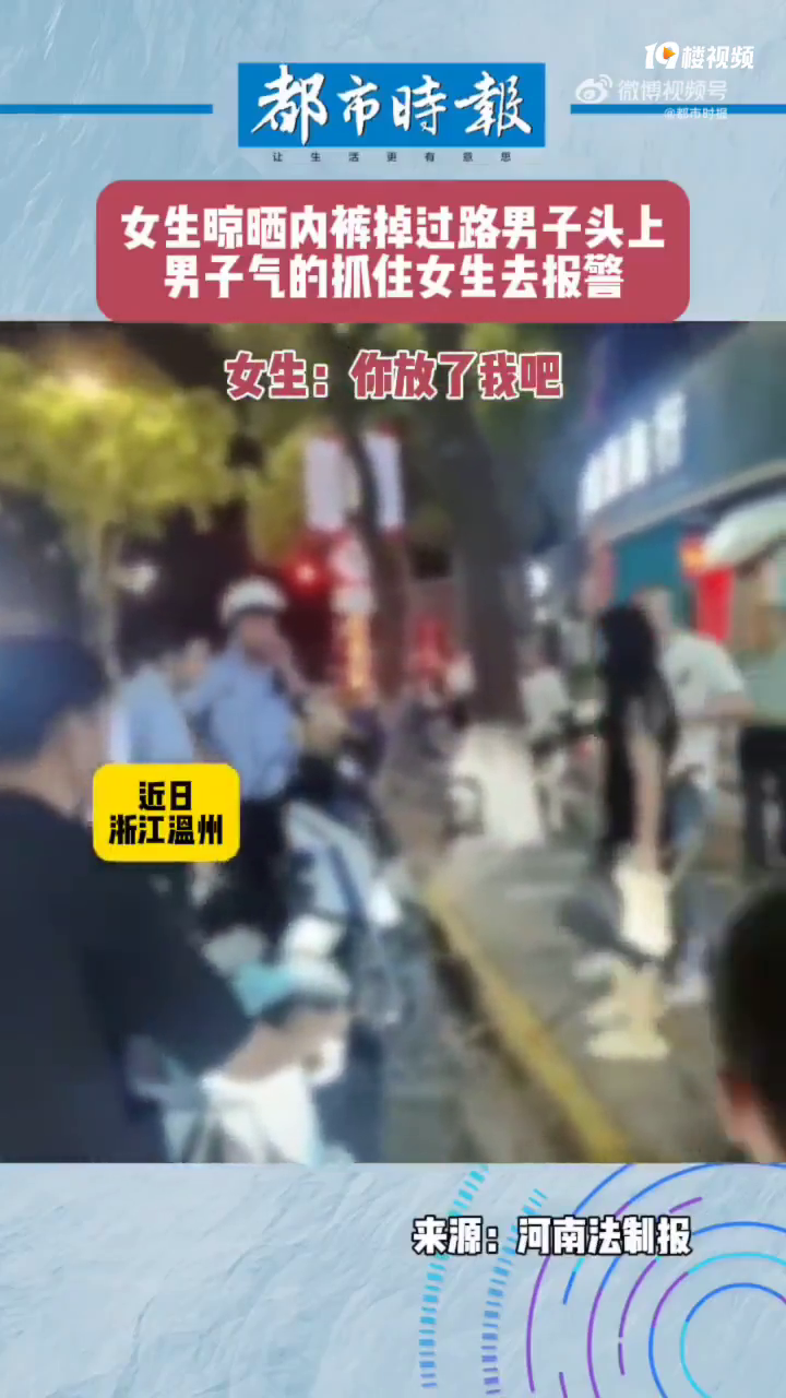 近日,浙江温州。一女生晾晒的内裤不慎从楼上掉落,刚好掉到了过路的男子头上,男子很生气当街抓住女生,一边训斥一边拉着女生去报警。女子哀求:“你放了我吧!”网友:在当地这可是大事,要包红包打鞭炮的。