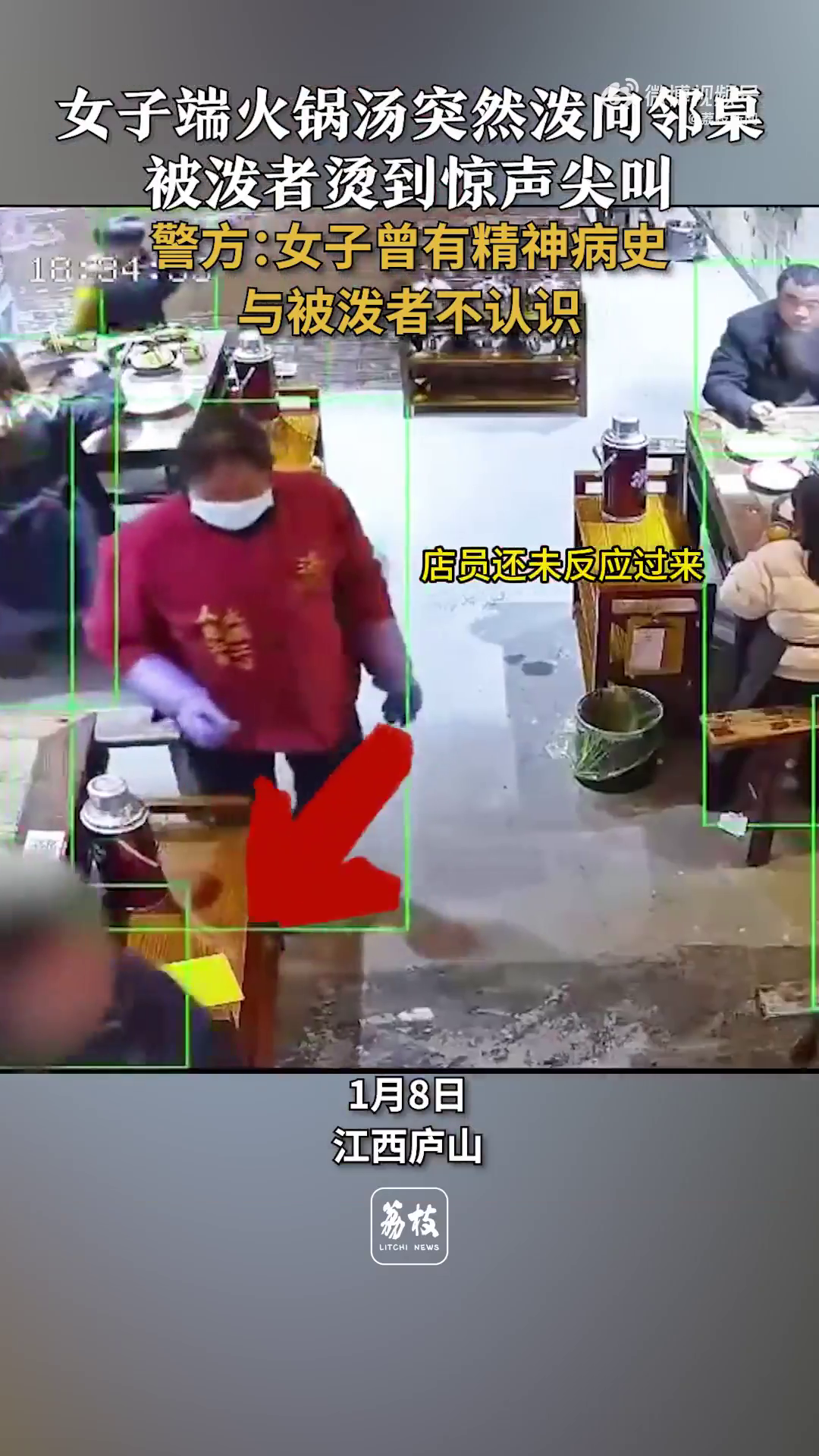 女子端火锅汤突然泼向邻桌,警方:女子曾有精神病史近日