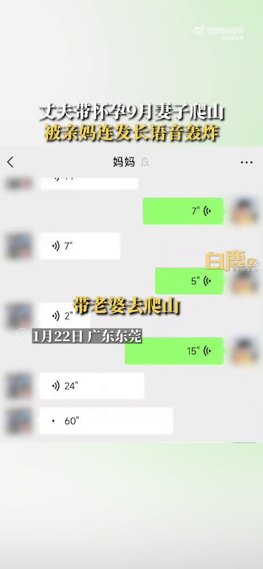 #孕期能做哪些运动#1月22日,广东东莞。丈夫带怀孕9月妻子爬山,被妈妈发长串语音“轰炸”。妻子陈女士称,自己怀孕9月,一直都有坚持运动。当天丈夫看自己无聊,就带自己去爬观音山,中途累了就歇一歇,爬了不到4小时登顶,感觉良好。婆婆得知后吓了一跳,打电话没打通,就发了很多语音“轰炸”丈夫,最长的有60秒。婆婆很可爱,平时也特别关心自己。建议广大孕妇们如果想运动,一定要量力而行。@白鹿视频