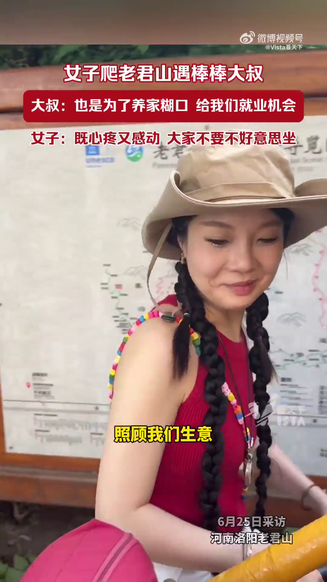 【#女子呼吁爬山有需要别不好意思坐滑杆#,滑杆大叔:也是给我们就业机会】#滑杆大叔说都不好意思坐我们就失业了# 近日,彭女士爬老君山,遇到抬滑杆的“棒棒大叔”,被大叔热情招呼坐“滑杆”上山,300元一人。一开始,彭女士心疼大叔抬自己上山太累,大叔说:“我们要靠这个生活,靠这个赚钱,你坐我们才能赚钱。我们也是为了养家糊口,也是给我们一个就业的机会。” 彭女士接受Vista看天下采访时称,大叔跟她说,