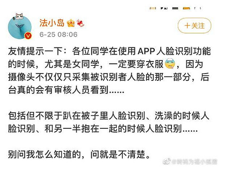 知道吗,APP人脸识别有时候是人工审核,所以人不要赤身裸体!