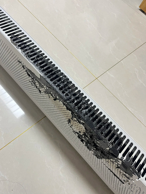 屋主洗澡前把衣服随手就搭在了踢脚线上,等出来闻到一股胶味,一看衣服都被踢脚线烧融化了,天!还好他洗澡速度快,不然家都要没了以为上面写的禁止覆盖是假的也,没想到是真的,踢脚线跟暖气片还是不一样