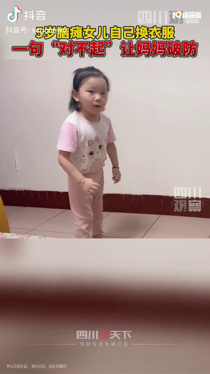 重庆5岁脑瘫女孩挑战自己穿衣服,因动作慢向妈妈道歉