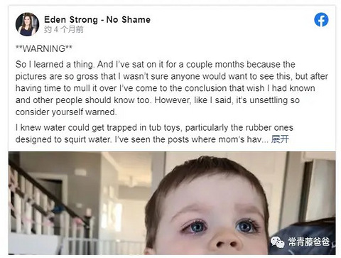 重要的事情说三遍:家里有洗澡小黄鸭的赶紧丢掉!丢掉!丢掉!否则娃的眼睛,可能会有“保不住”的风险。这不是危言耸听,而是一个美国妈妈在帖子里讲述的真实事件。 虽然现在小小常洗澡早就不需要小黄鸭和其他玩具的陪伴了,但看完这个帖子后还是一阵阵后怕:这哪里是小黄鸭啊,简直就是不亚于粑粑的细菌炸弹!
