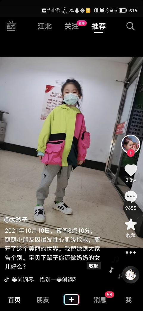 刷视频看到这个很漂亮的妹妹妈妈说10月10号晚上,孩子因为爆发性心肌炎离开了这个世界哎,有被吓到,我还是第一次听说这个病,看评论说这个病进展快,存活率很低,而且感冒病毒能诱发这个,好黑人
