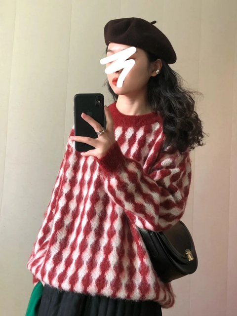 我悟了,原来红色这么显白!这套毛衣把新年氛围拉满