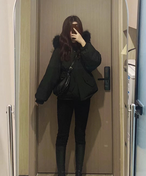 这件羽绒衣很实用!黑色耐脏防水,腰部有抽绳,大毛领很保暖,是我喜欢的一个博主安利的 要去有雪的地方玩,好冷啊今日份的安全感是厚厚的羽绒衣给的!