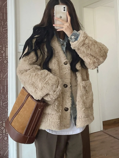 70几的羊羔毛外套真太暖和了!姐妹们快去冲!