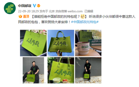 最近,中国邮政的周边产品又火了,这次是卖包包。