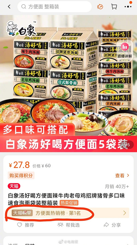 315晚会曝光土坑酸菜,白象食品霸气回应:一句话,没合作,放心吃,身正不怕影子斜。 而近日,因近期销量暴增,白象官方旗舰店喊话,“吃多少买多少,不要浪费”。3月9日,白象直播间主播称能拍就能发货。