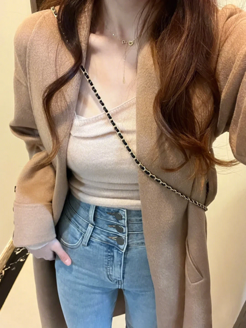 今年买的质感最好的大衣!!真的绝这个羊毛用料也太好了姐妹们!!光泽感真的很绝 我妈以为起码2000+也想来一件没有很厚但是巨保暖 完全不冷!!这样搭配怪好看的 淘宝衣服跟裤子地址:大也池ACHI