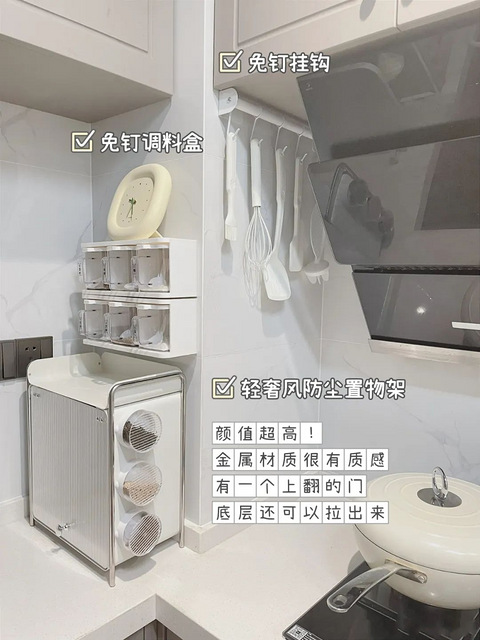 分享了 7 个厨房好物,美观实用,一起看看吧!(转自好好住) 01. 免钉调料盒 一排三格,不够用了还可以往上叠加,用免钉胶上墙,搭配标签贴纸收纳调料。