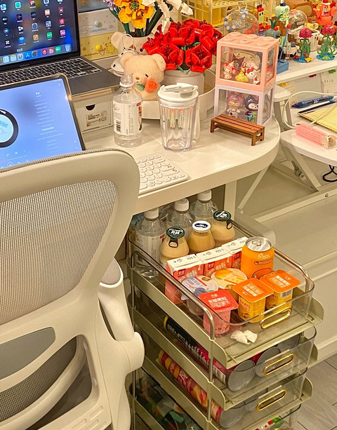 滴滴!零食大亨的小推车来啦在书桌旁边放一个零食小推车的幸福感谁懂!!抽屉式的设计很方便!!自带小划轮