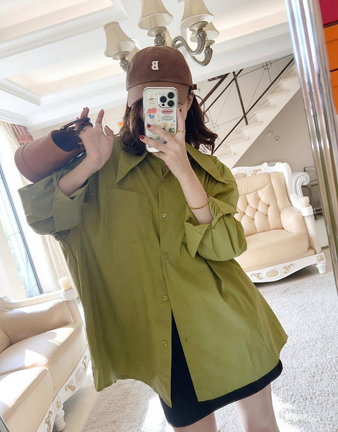 superniniyy 时髦洋气尖尖领衬衫宽松百搭又显瘦长袖全棉衬衣女秋鞋子Pedro 包包Simon miller秋天还是爱绿色~这件衬衣真的很小清新啊,有人爱吗图源买家秀