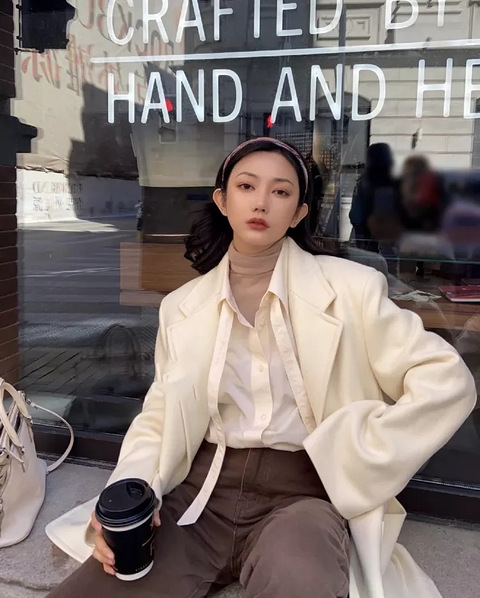 基础款基础配色百搭又不过时而且不挑气质 可御可酷奶油白毛呢西装自带高级感滤镜单穿叠穿都很时髦