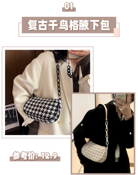 没有什么事是买包解决不了的 作为搭配小帮手包包的作用太大啦不同的包搭配同一件衣服效果也是大相径庭今天就给大家推荐平价自带高级感好看到爆的包包们~ 不同于一般的格纹,千鸟格更加特别亚克力+皮质的拼接链条设计感满满,性价比超高~ 店铺:麦尚原创自制女包
