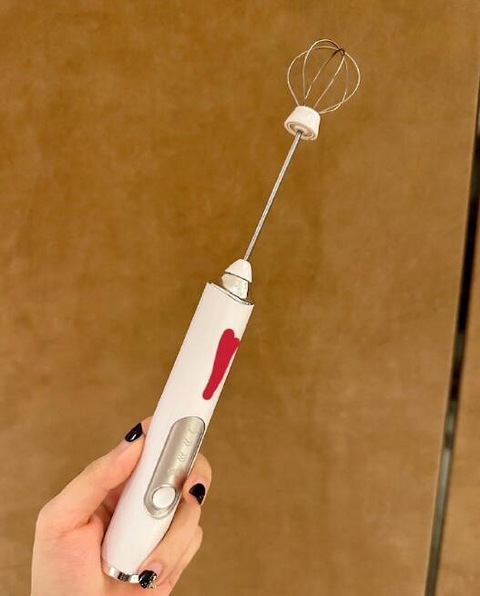 我买这个东西一年多了啊,然后我买了就忘了,就忘了!!(只是买了,就走个流程是不是?) 然后我每天冲咖啡粉纯纯手工?筷子搅搅,往死里搅,到最后还是有很多融不掉的咖啡粉一坨坨的漂浮在牛奶上面 一个月前我抬头看到厨房窗台上一直竖着这么个东西,我觉得它好像有点眼熟,它应该拥有一些功能。比方说,当时我手里正好拿着筷子,在疯狂搅动已经从一摊变成了一坨坨坨的咖啡粉我凭着直觉把它怼到了我的咖啡杯里,按下了开始的按