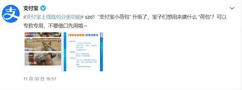 最近,支付宝 App 上线 “支付宝小荷包” 功能,用户可以根据不同的支付场景,创建多个特定的“小荷包”。