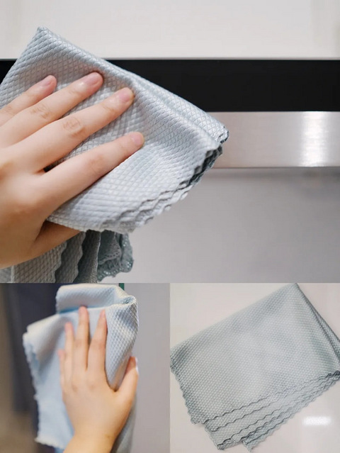 一、鱼鳞抹布 易清洗,不粘毛,速干,不留水渍 适合擦不锈钢和玻璃材质的物品(转自一兜糖家居,如侵删)