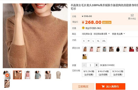 天气凉了 又到了一年当中囤积毛衣了这个店买过几年衣服感觉超值 今年老板上的新款都是山羊绒毛衣 还有纯羊毛的 我只是种草 不求回报 再说老板人很好 热情 说现在是亏本冲量价 绝对超值 我先发几款 大家看好其他款可以找老板聊 都可以打折 合适大家都可以买 ....... 【店铺】:高端原创羊绒制品工厂店【时间】:10.10.-11.10 【暗号】:回复淘宝ID缩写+重庆购物狂,在帖子里,截图给卖家,不