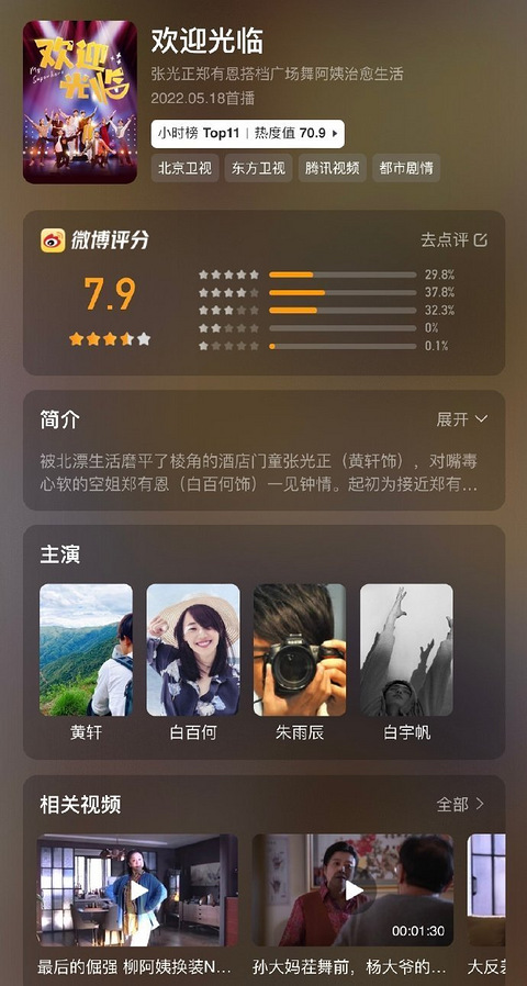 正午阳光新剧《欢迎光临》开播一周,微博开分7.9