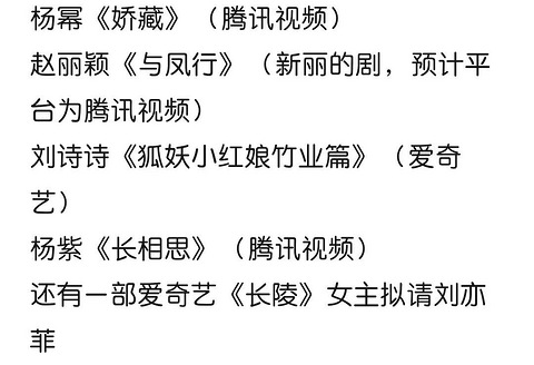 杨幂《娇藏》; 赵丽颖《与凤行》; 刘诗诗《狐妖小红娘竹业篇》; 杨紫《长相思》; 还有在谈的刘亦菲《长陵》 兜兜转转,古偶还得看85