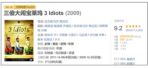 十五年前,有一部印度电影,在中国大爆。 至今,豆瓣190万人打分,仍保持着9.2分的神级口碑。 稳居TOP250第14位。 它就是《三傻大闹宝莱坞》。