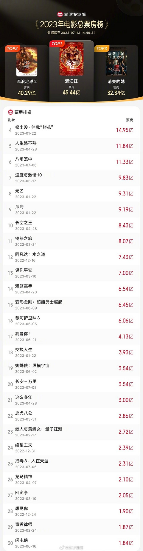 今年上半年的票房前30名,哪部电影给你留下最深刻的印象?