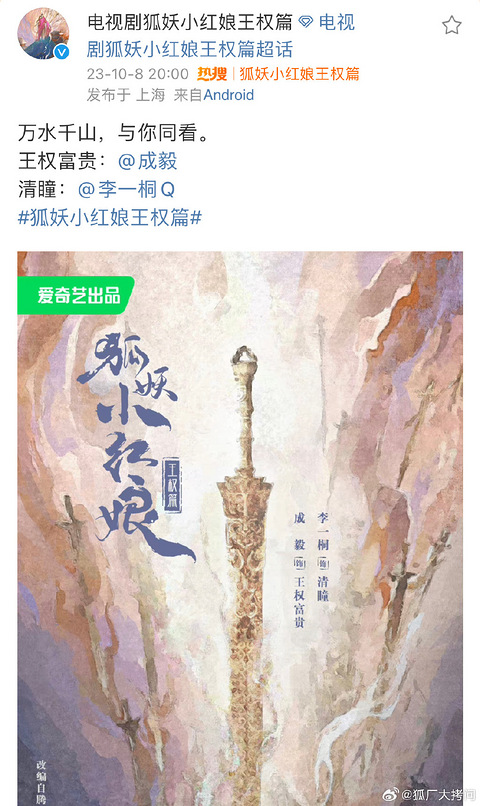 《狐妖小红娘王权篇》官宣成毅、李一桐