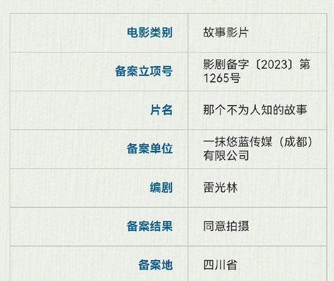 小说《那个不为人知的故事》,要拍电影了 编剧:雷光林(战斗民族养成记) 梗概:文物修复师杨昭与神秘的司机陈铭生相恋,却在一次旅行中撞破他是卧底的秘密。陈铭生再次执行缉毒任务,两人约定一切结束后结婚,想不到却成为生死之别
