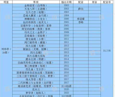 来看看85后演员作品的配音率,现在大环境都要求演员自己用原音,配音听多了确实串戏 刘亦菲 除了早年的作品是配音,其他都是原音