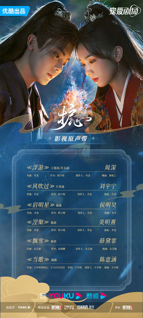 《护心》OST阵容歌单来了!6首歌,又有周深 刘宇宁 《浮游》周深 、《风吹过》刘宇宁 、《启明星》侯明昊、《涅槃》炎明熹、《飘雪》薛黛霏 、《当歌》陈意涵