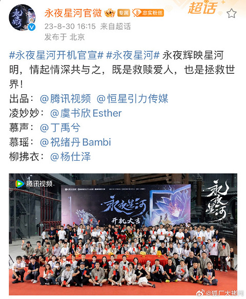 《永夜星河》今日开机仪式 凌妙妙:虞书欣 慕声:丁禹兮 慕瑶:祝绪丹 柳拂衣:杨仕泽