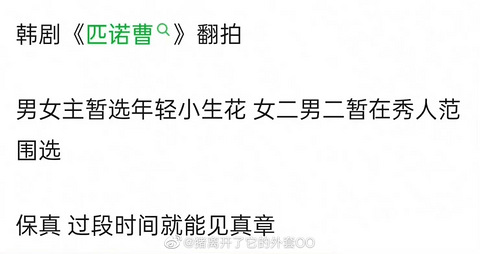 韩剧《匹诺曹》即将被翻拍,男女主暂选年轻小生花,女二男二暂在秀人范围选