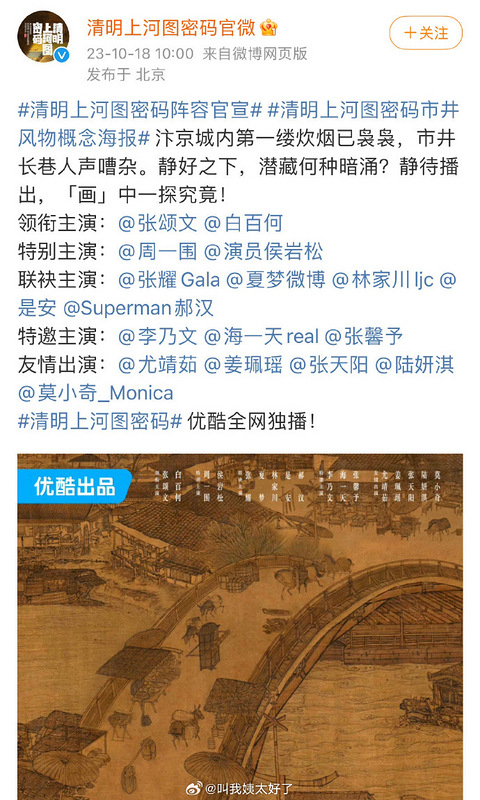 《清明上河图密码》主演官宣:张颂文、白百何,之前一直在传是雷佳音