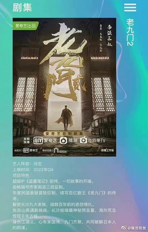 老九门2将于10月开机,期待满满啊 希望还是原班人马